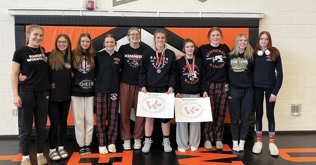 The Kemmerer girls went up against 25 other teams at the West Regional Wrestling Tournament in Powell over the weekend where they placed 8th with 85.5 points. Star Valley won the team race with 208 points followed by Pinedale with 156 and Green River with 146.5.