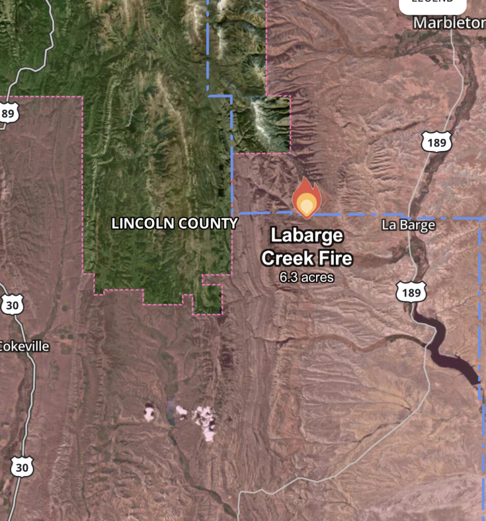 As of 9:00 p.m. Wednesday, the Labarge Creek Fire was reported to be 6.3 acres in size near Miller Mountain in the Bridger-Teton National Forest. The cause of the fire was not given and containment amount was reported.